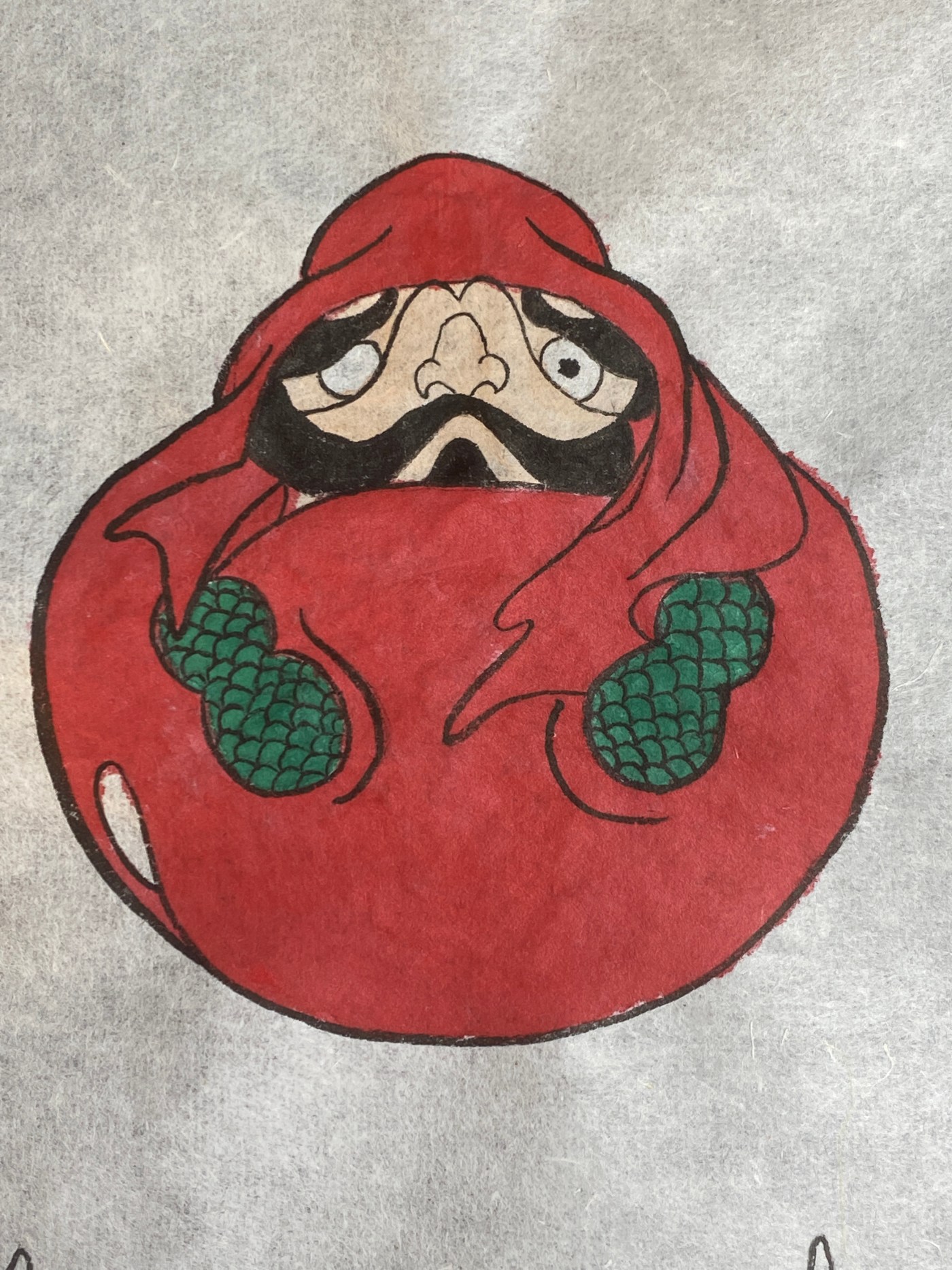 Daruma is modeled after a person named Daruma Daishi. Bodhidharma is the founder of Zen Buddhism, and legend has it that his hands and feet rotted after sitting in front of a wall for nine years.